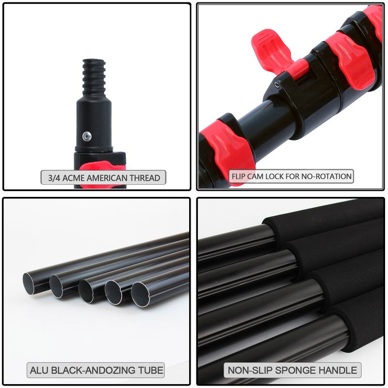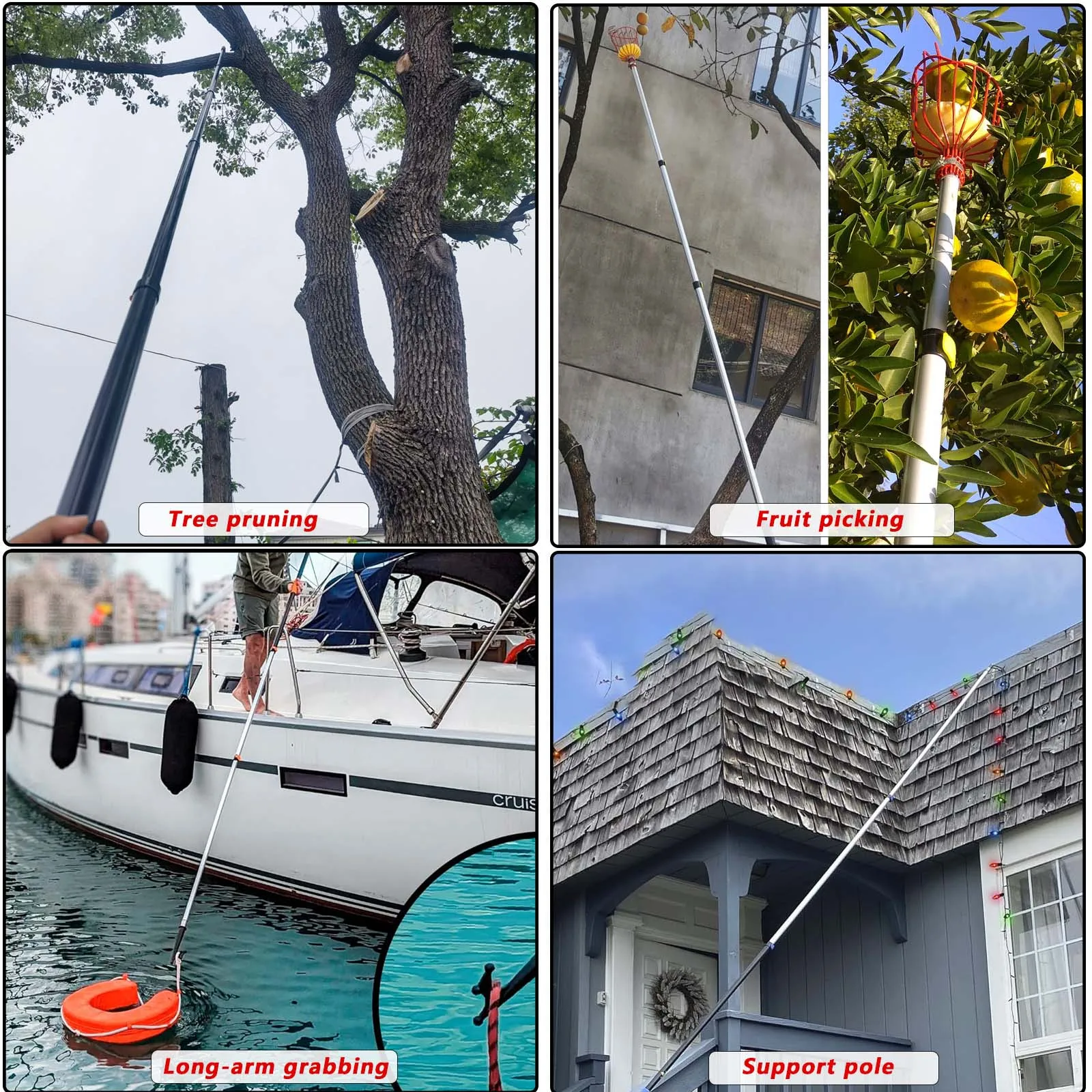 MULTI-FUNCTIONAL TELESCOPIC EXTENSION POLE:The universal attachment point fits nearly all household accessories: paint roller, squeegee, cobweb duster, ceiling fan duster, feather duster, fruit picker, light bulb changer, and more. A surprisingly short 4 ft retracted pole length comfortably fits in your car trunk for easy transportation and is easy to store indoors.With simple modifications, it can also be used for picking fruit baskets and pruning high branches. In short, it's very versatile.
