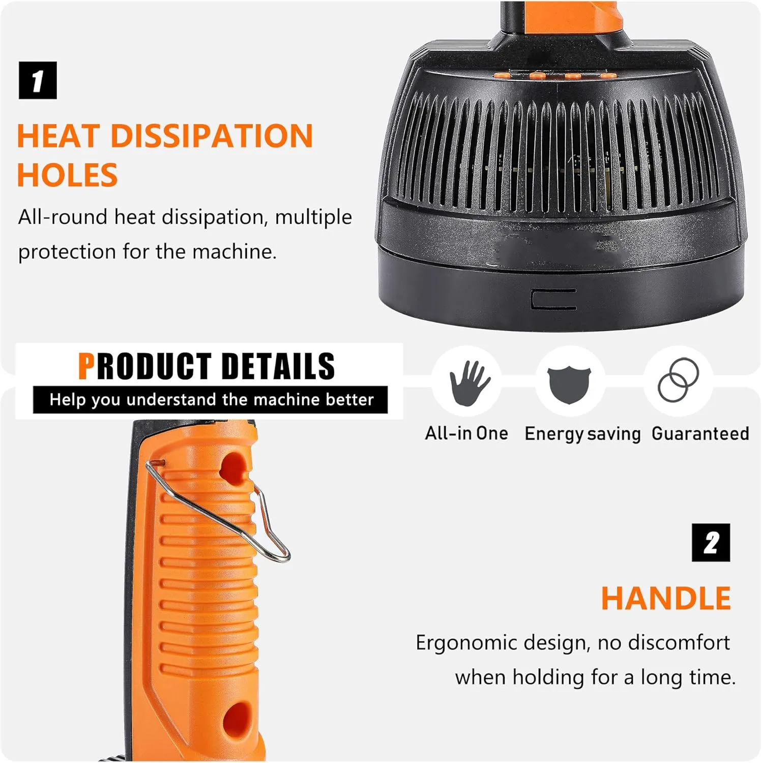 2.The panel is simple to operate, plug and play, overheat protection circuit. Copper induction coil, high efficiency, low consumption 3.Allaround cooling holes provide faster ventilation and heat dissipation,preventing from short circuits caused by motor overheating.