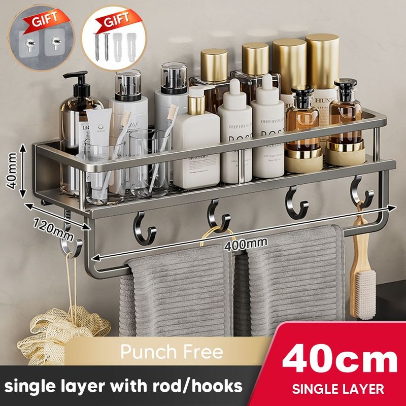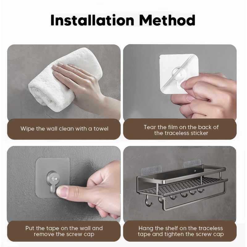 Compared to stainless steel or spray painted finishes, our bathroom shelves are made of space aluminum, which is more resistant to corrosion and scratches and provides superior texture. The surface is specially treated to resist oxidation in humid environments, ensuring that the shelves maintain a brand new appearance for a long time.