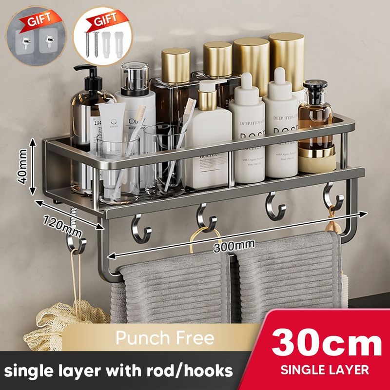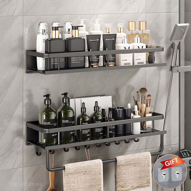 Compared to stainless steel or spray painted finishes, our bathroom shelves are made of space aluminum, which is more resistant to corrosion and scratches and provides superior texture. The surface is specially treated to resist oxidation in humid environments, ensuring that the shelves maintain a brand new appearance for a long time.
