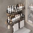 Our corner shelves are designed to optimize storage capacity and provide ample space for a variety of bathroom necessities, freeing up valuable bathroom space. It features a multi-layered design, each of which can be adjusted in height as needed to accommodate items of different sizes and shapes. Each shelf has two hooks and a towel rack for added convenience.