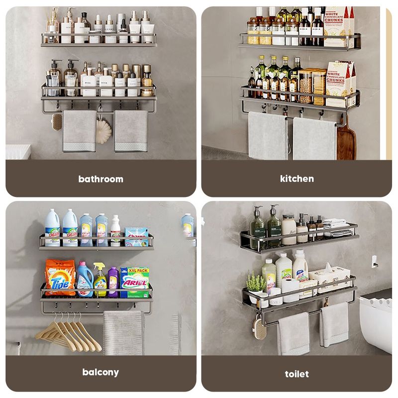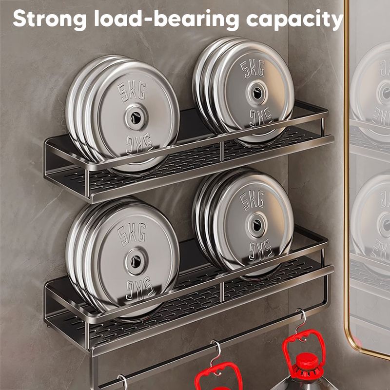 Compared to stainless steel or spray painted finishes, our bathroom shelves are made of space aluminum, which is more resistant to corrosion and scratches and provides superior texture. The surface is specially treated to resist oxidation in humid environments, ensuring that the shelves maintain a brand new appearance for a long time.