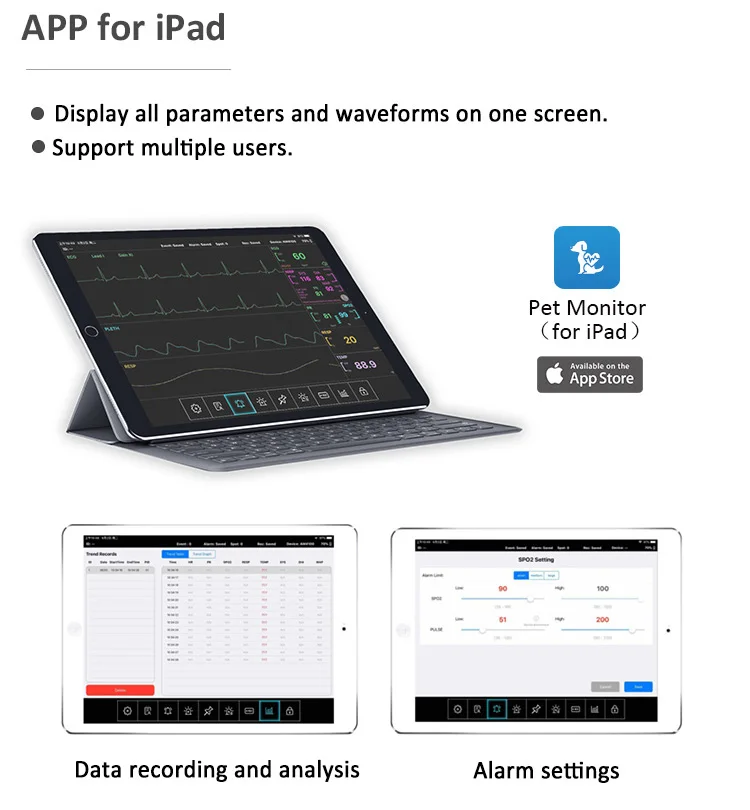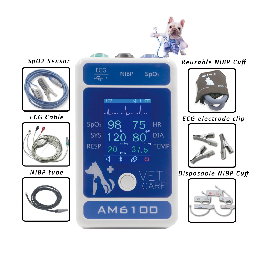 AM6100/AM6200 Veterinary Monitor animal Portable Handle Multiple Vital Signs 6 PARAMETERS Animal Vet Patient Monitor