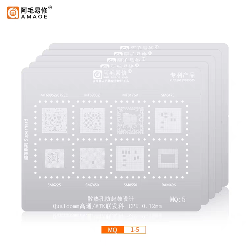 AMAOE Android Series CPU BGA Reballing Stencil forTensor MTK Qualcomm Hisilicon Exynos Spreadtrum Chip Tin Planting Repair Tools