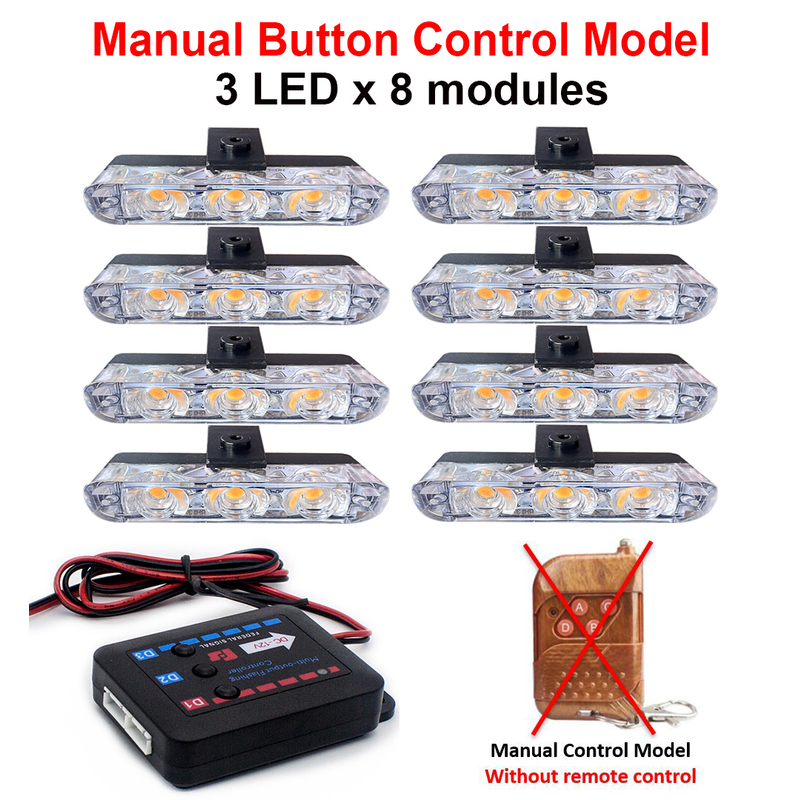 Amber 3LED Police Light Flasher Wireless Remote Car Grille Strobe Warning Lights Rescue Vehicles Emergency Flash Signal Lamp 12V