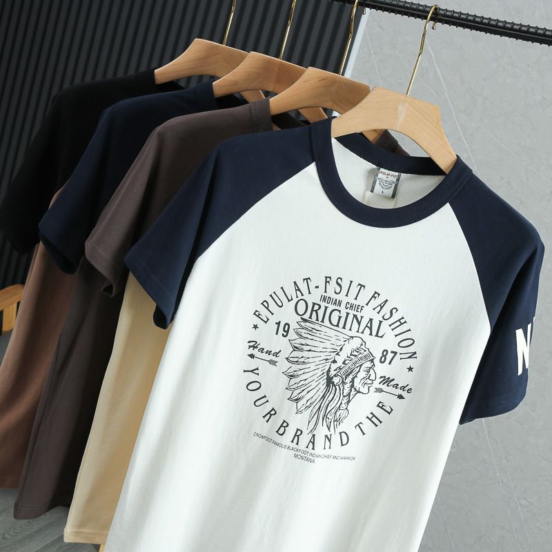 American Casual Cotton Washed Brushed Half Sleeve T-shirt Gray And Blue 3XL