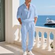 American loose linen set for men autumn Hawaiian home commuter thin Henry shirt long sleeve pants set