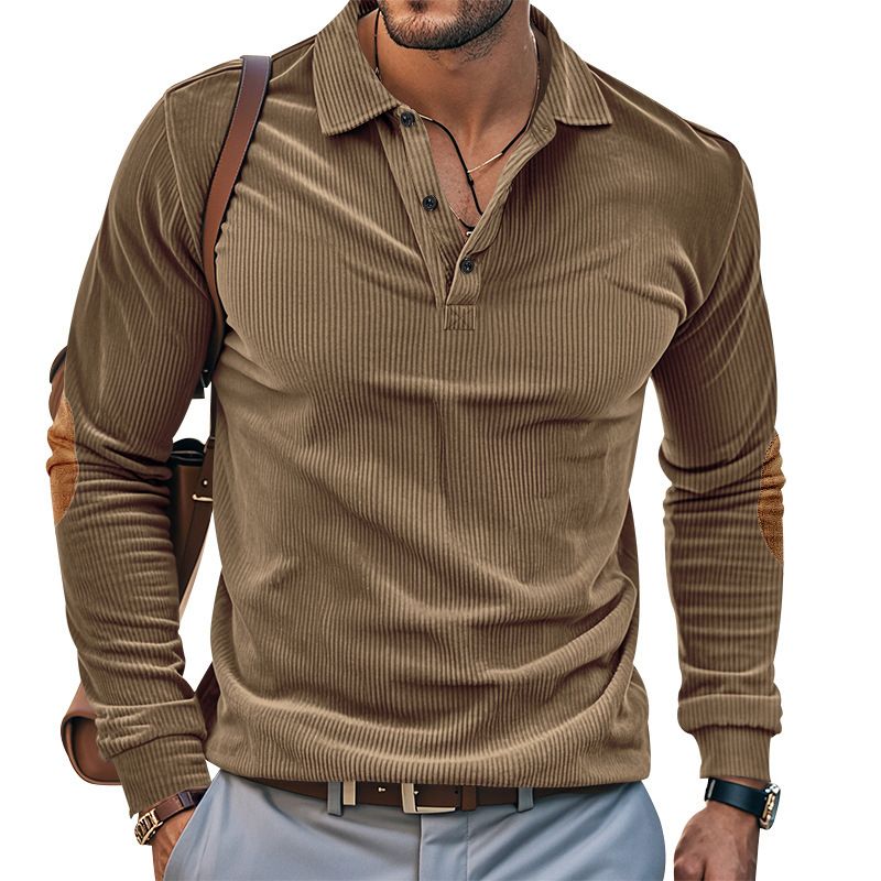 American Men's T-shirt Spring And Autumn Long Sleeve Corduroy Light Gray XXL