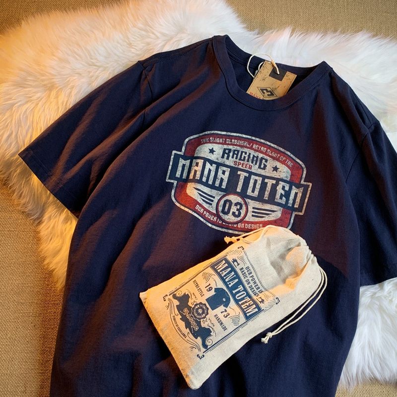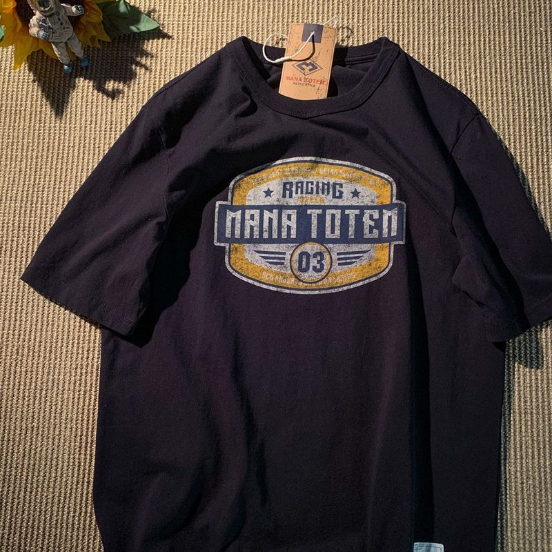 American Retro Girl 2021 Summer New Short Sleeve T-shirt Men''s Loose Round Neck Printing Half Sleeve Versatile Dark blue L
