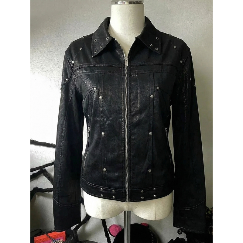 American Vintage Punk Jacket Casual Women Long Sleeve Sweatshirt Vintage Jacket Y2K Gothic Style Coat Fit Autumn Female Clothing