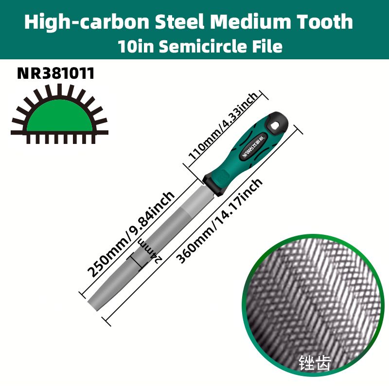 AMR Metal File 10 Inch Professional Carbon Steel File Flat/Half-Round/Triangular File/Square File Round File for Metal Work 1pc
