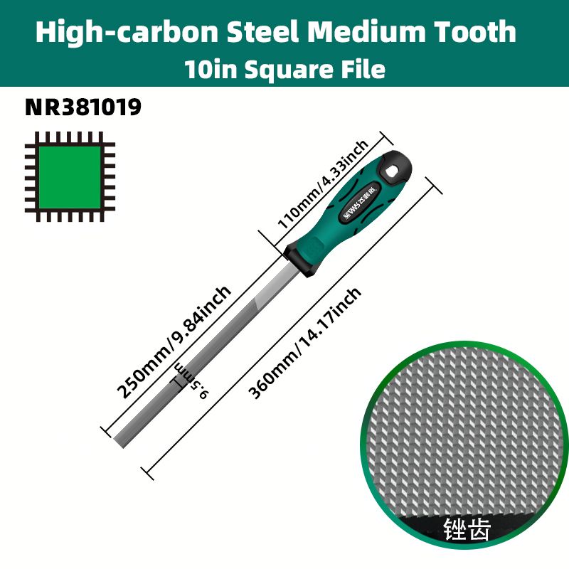 AMR Metal File 10 Inch Professional Carbon Steel File Flat/Half-Round/Triangular File/Square File Round File for Metal Work 1pc