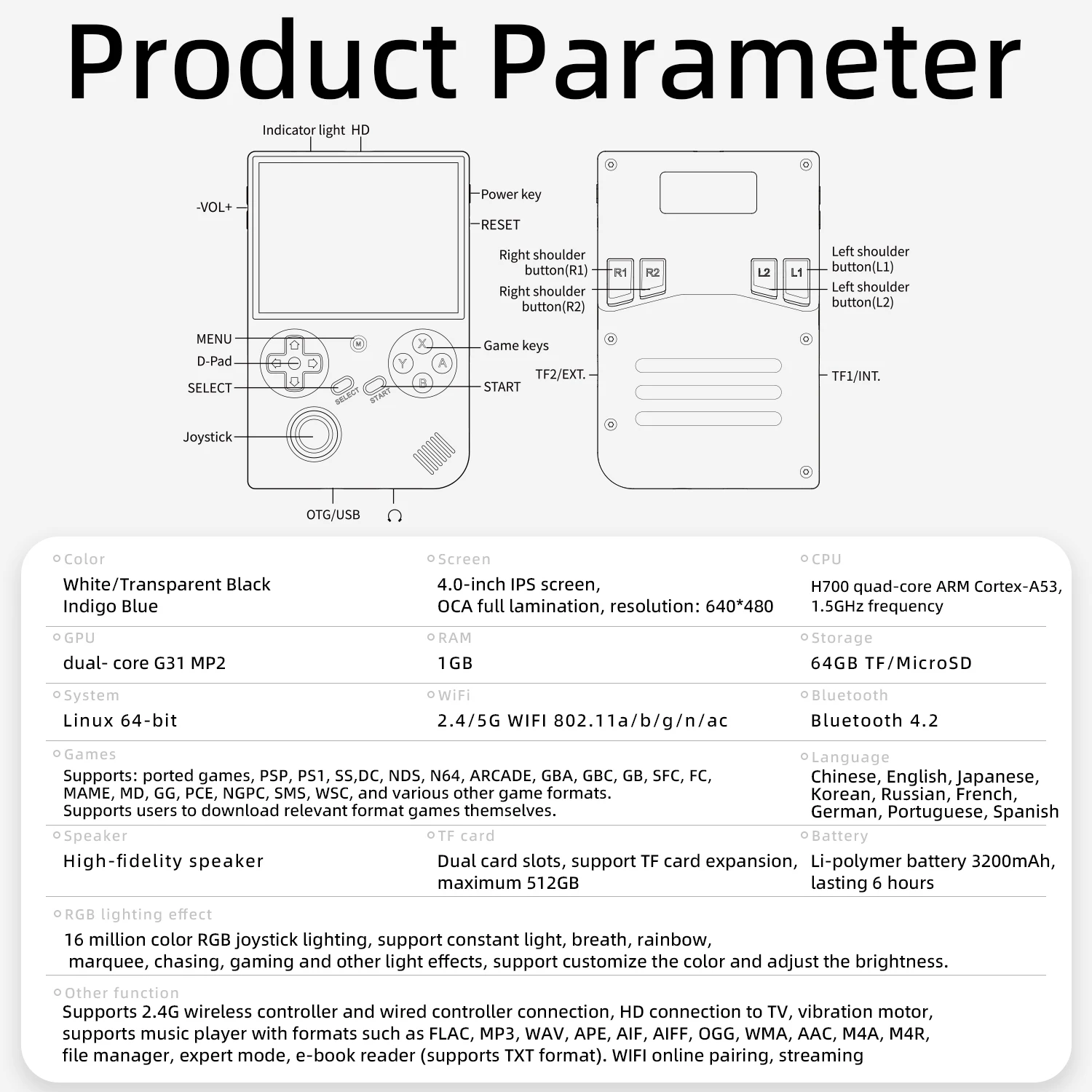 Other function | Supports 2.4G wireless controller and wired controller connection, HDMI connection to TV, vibration motor,WIFI online pairing, streaming | |||