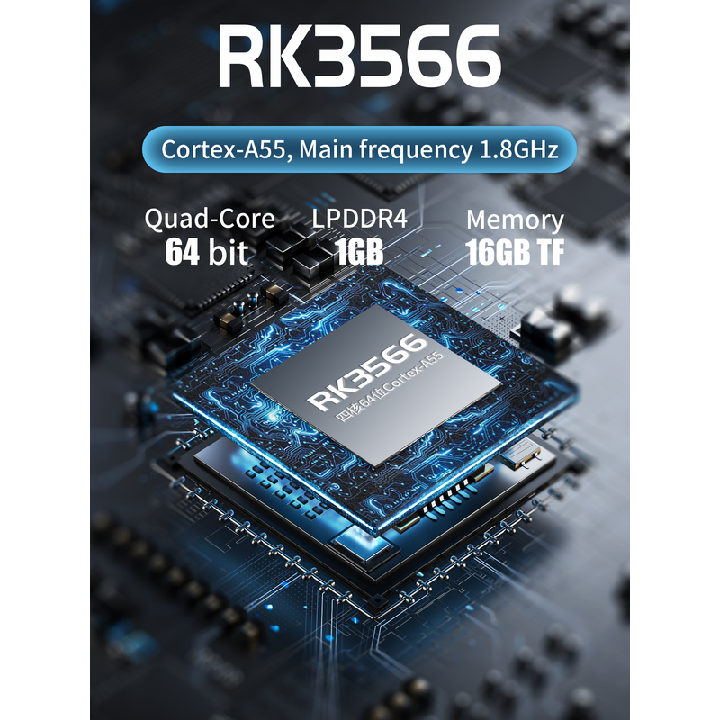 RK3566 Quad-Core 64bitCortex-A55, Main frequency 1.8GHz