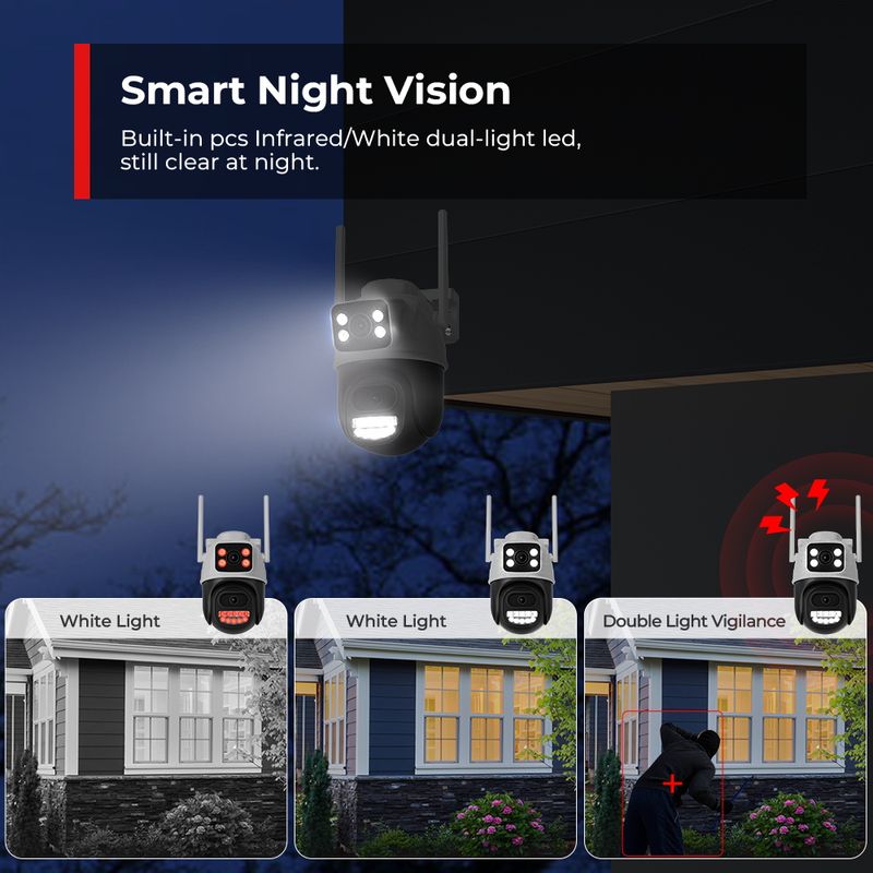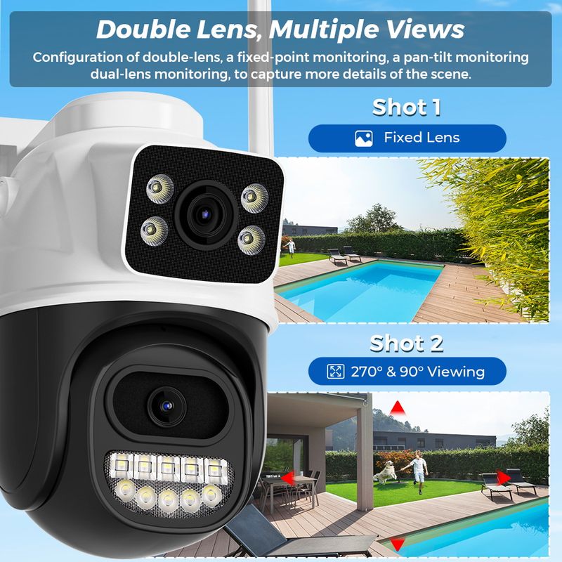 2.Dual-lens dual-sensor dual-screen, wide-angle Viewing + Long Distance Viewing to achieve clear monitoring from far and near;