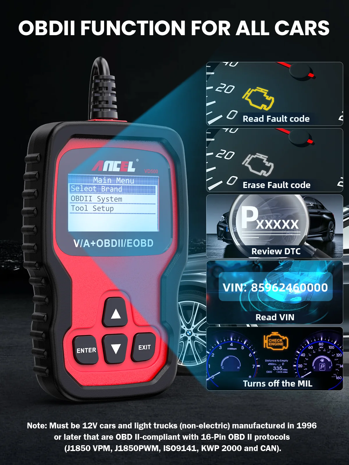 Ancel VD500 OBD2 Scanner Car Diagnostics Full System Individual Scan Airbag ABS Oil EPB OBD 2 Diagnostic Automotive Scanner Tool