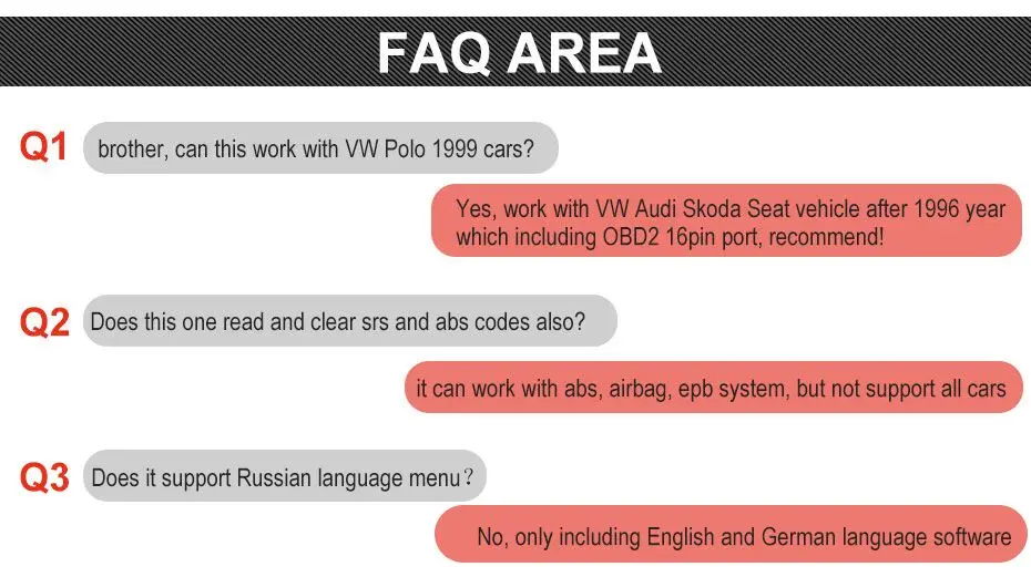 For Volkswagen (VAG) vehicles, read and erase codes on Engine, ABS, Transmission, SAS (not all cars), ESP, TPMS and more systems;Reset the oil, brake pad and Throttle position adaption.