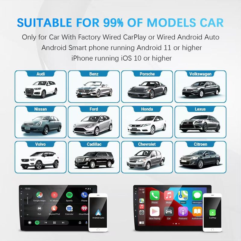 6. Great Compatibility. Right nowcompatible with 99% of cars on the market with wired CarPlay and Android Auto