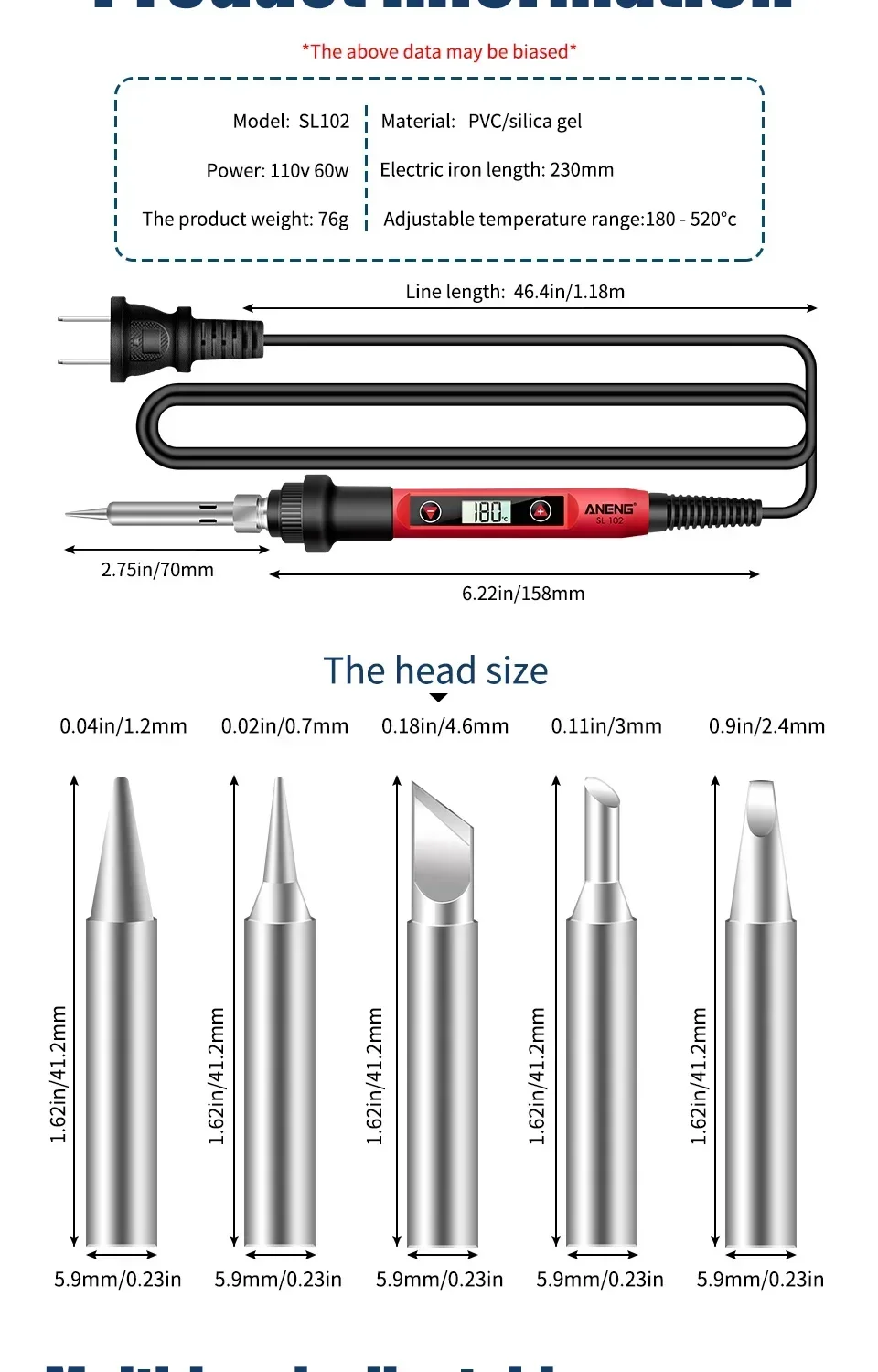 The temperature range of SL102 is: 180°C-520°C;with digital Display