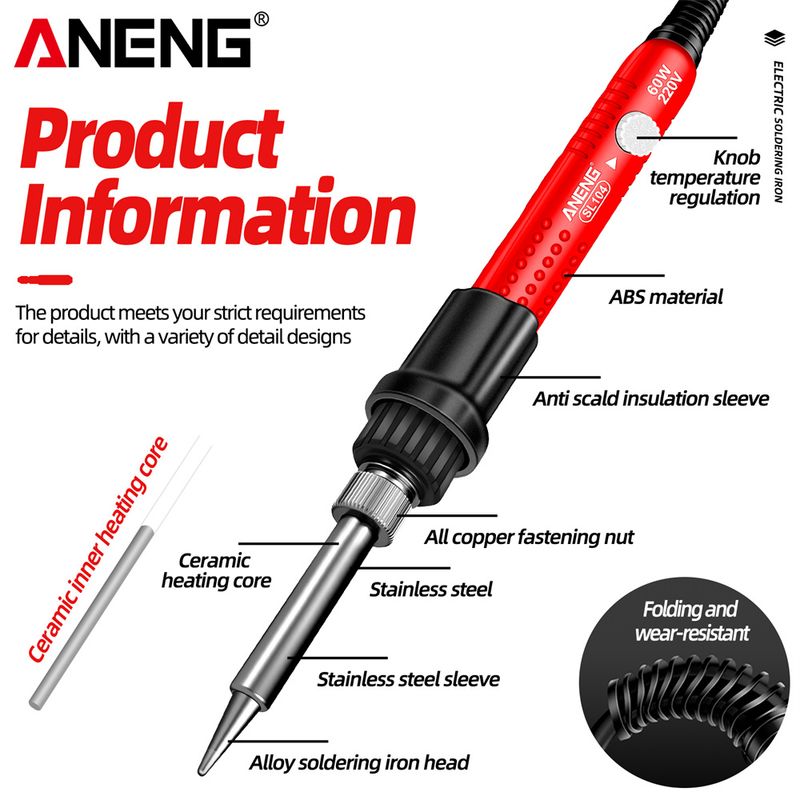 ANENG SL104 Electric Soldering Iron 60W Adjustable Temperature Portable Kit 110V/220V Heater Soldering Iron Tips Welding Tools