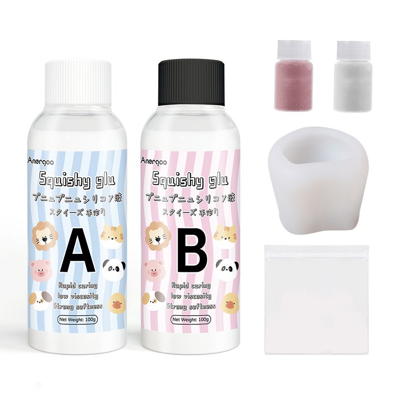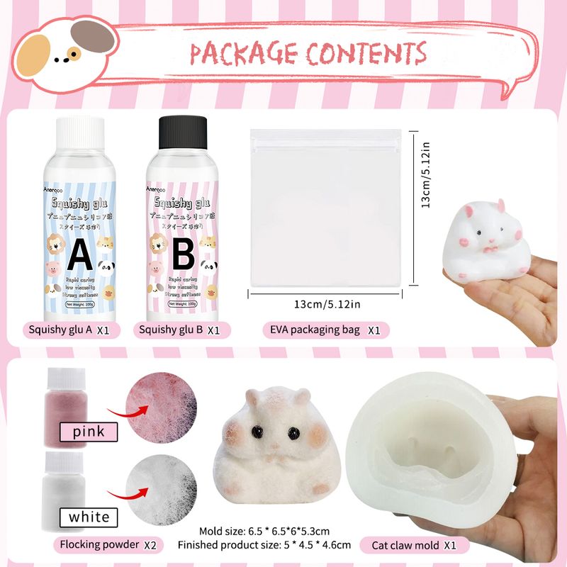 Anergoo Taba Squishy Making Kit - DIY Squishy Maker with Hamster Silicone Molds, Liquid Gel & Flocking Squishies Adults 200g