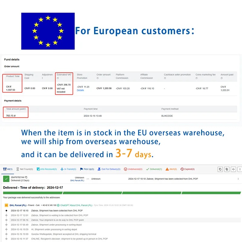 Should you require the parcel to be shipped from Europe to Ukraine, please contact us to arrange for an additional shipping fee of 30 USD.