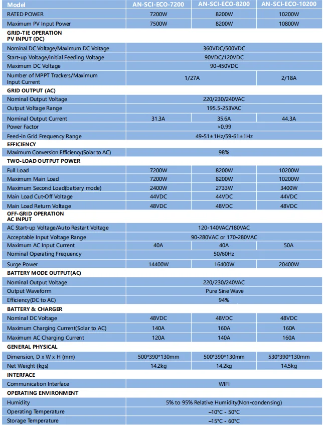 NVERTER MODEL | SCI-ECO-4.2KW | SCI-ECO-6.2KW |