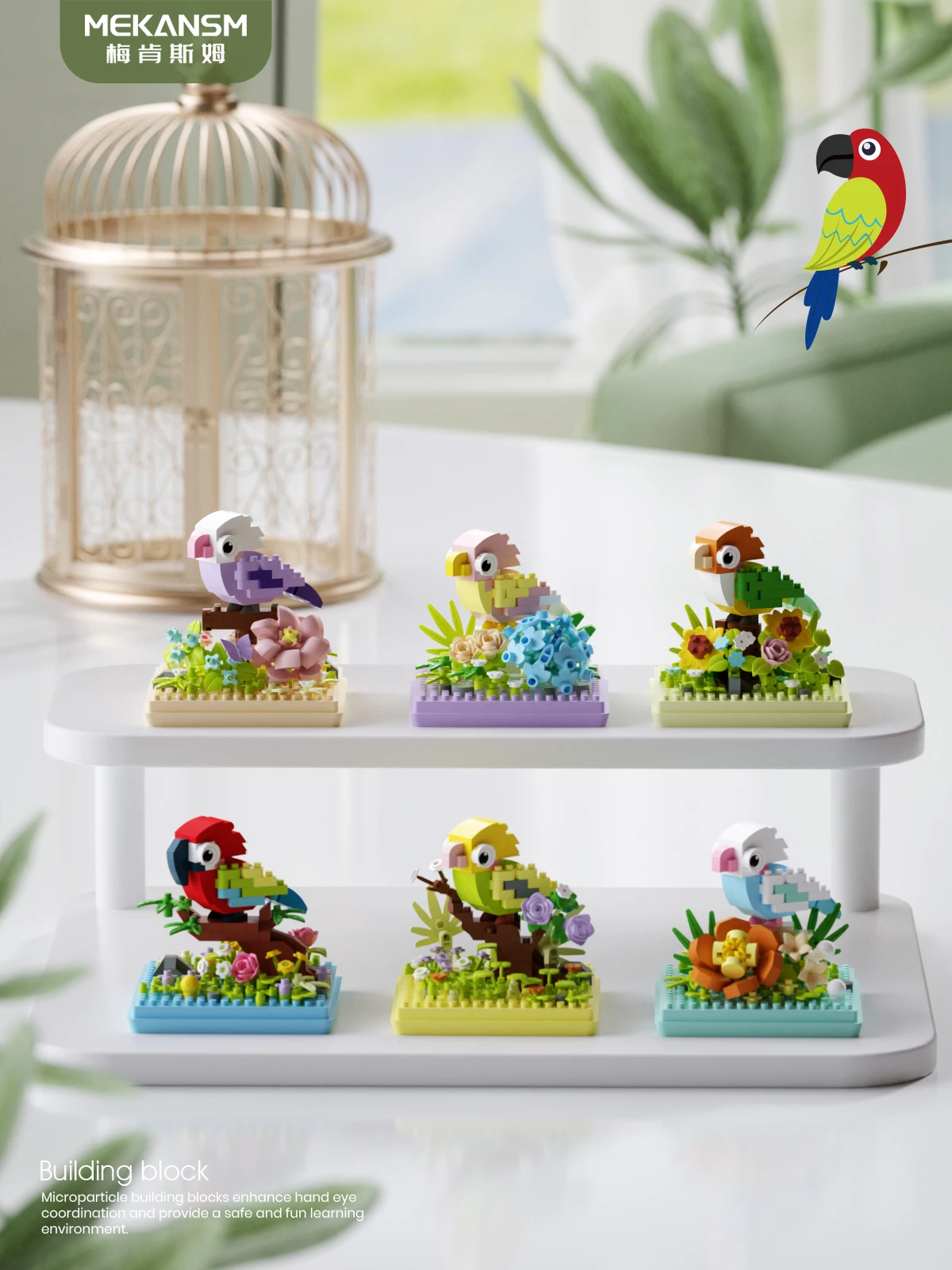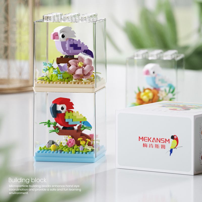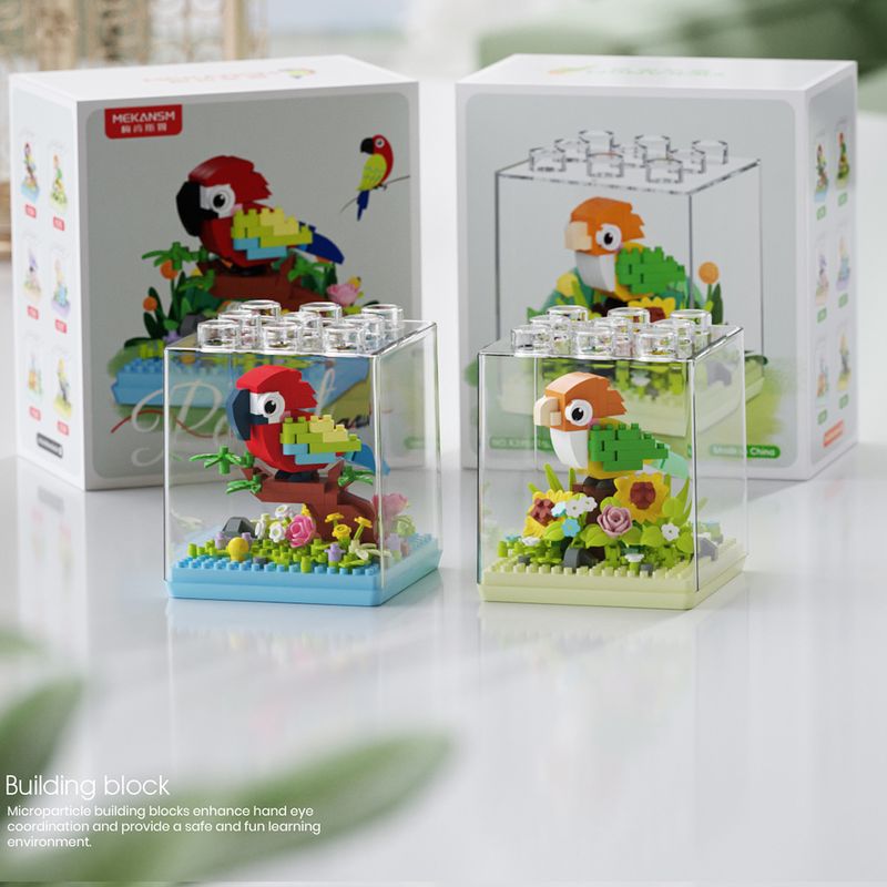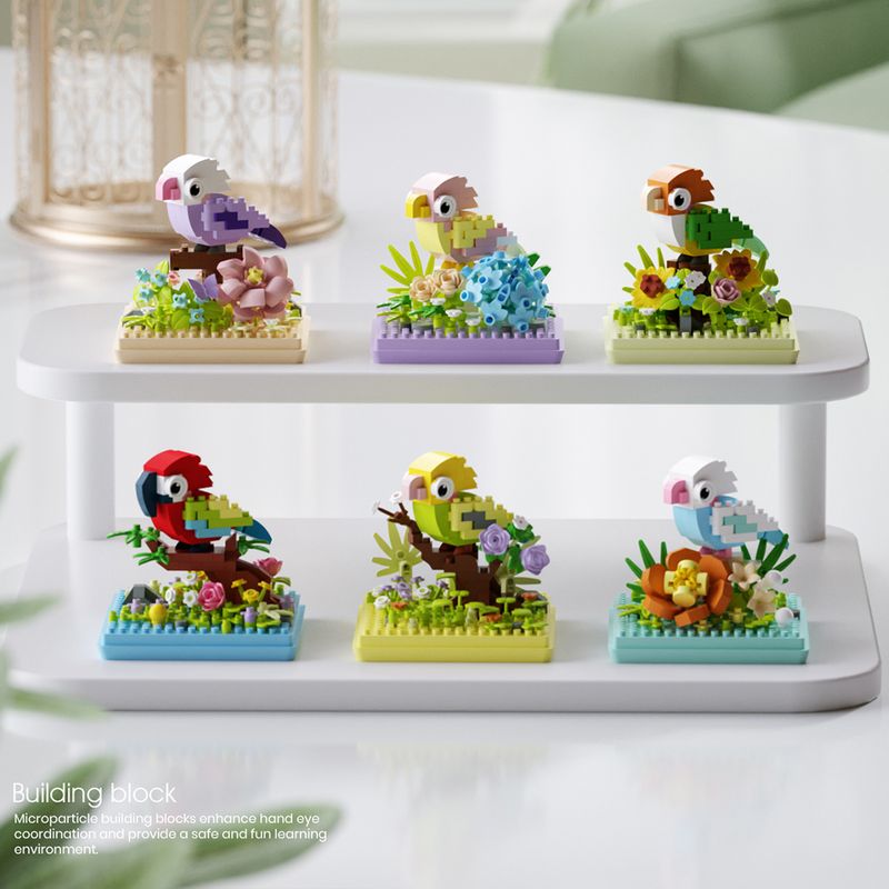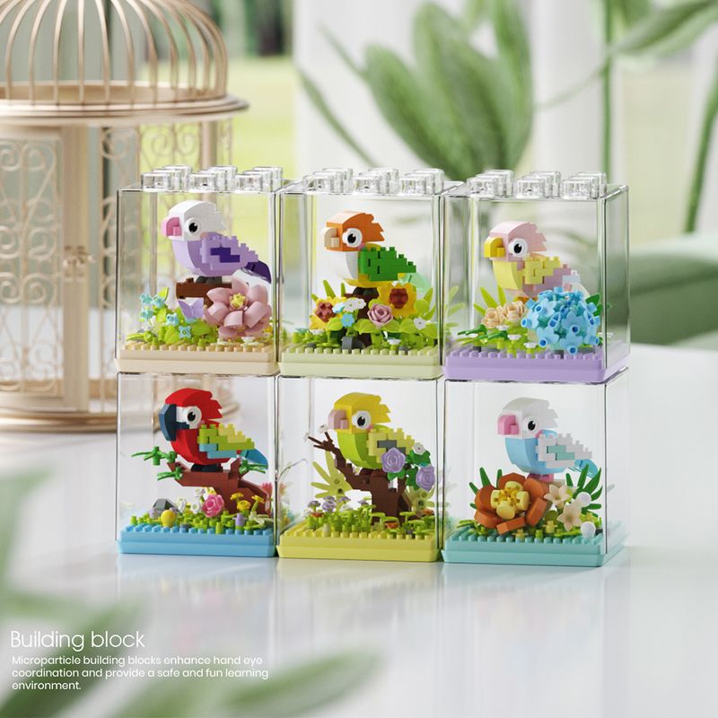 Animal Bird Creative Block 3D Model Mini Educational Parrot Assembly Bricks Desktop Ornament Toys Christmas Gifts for Kids