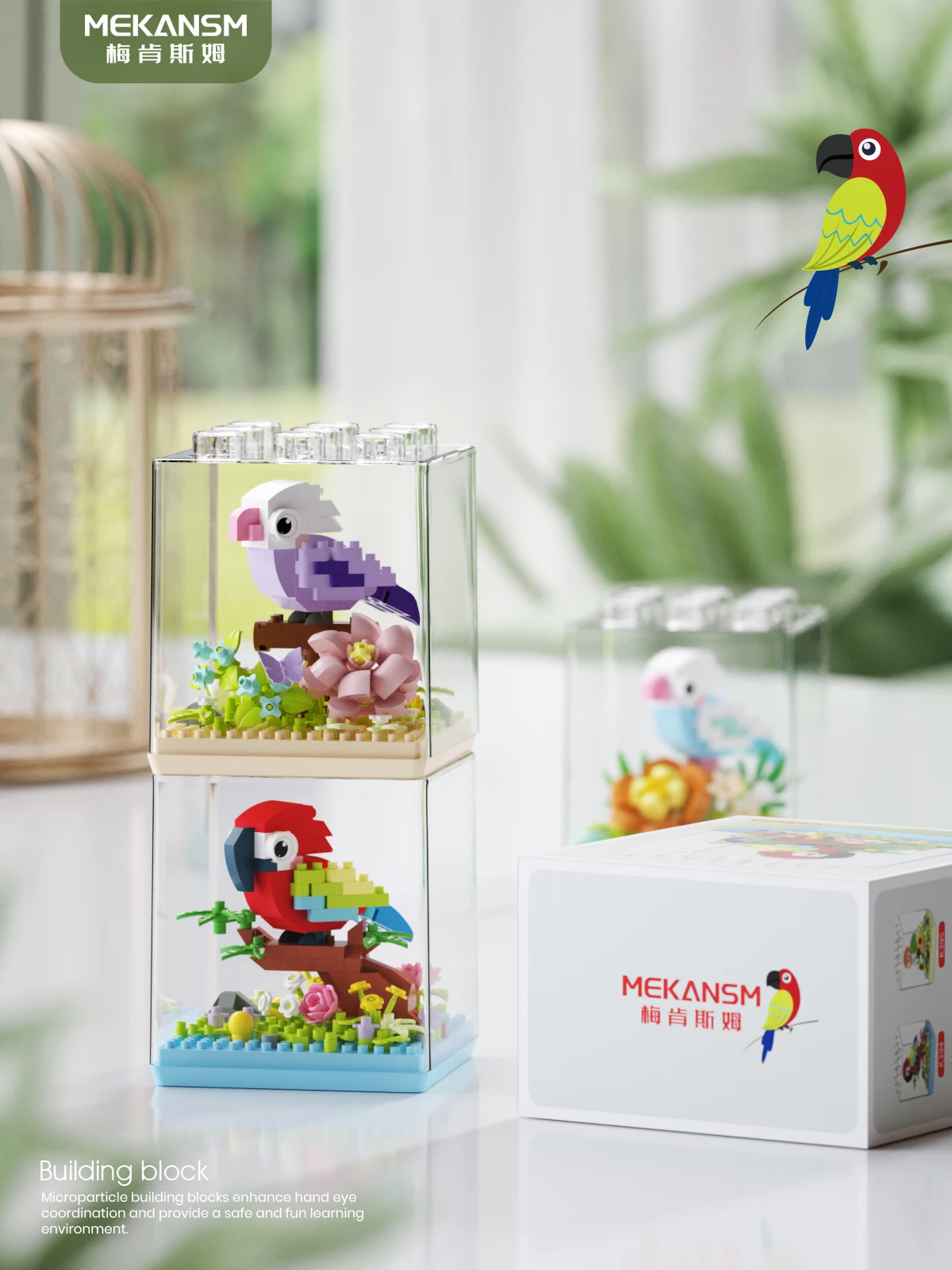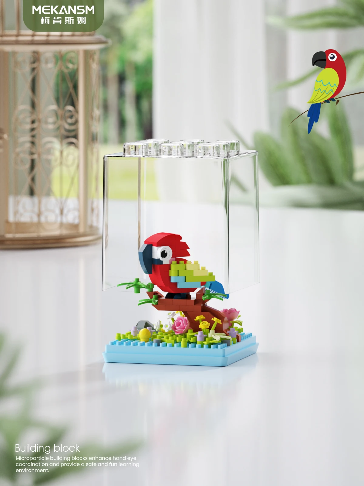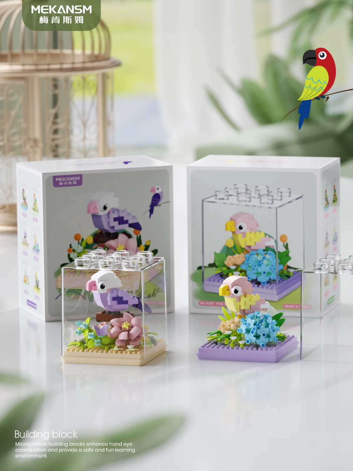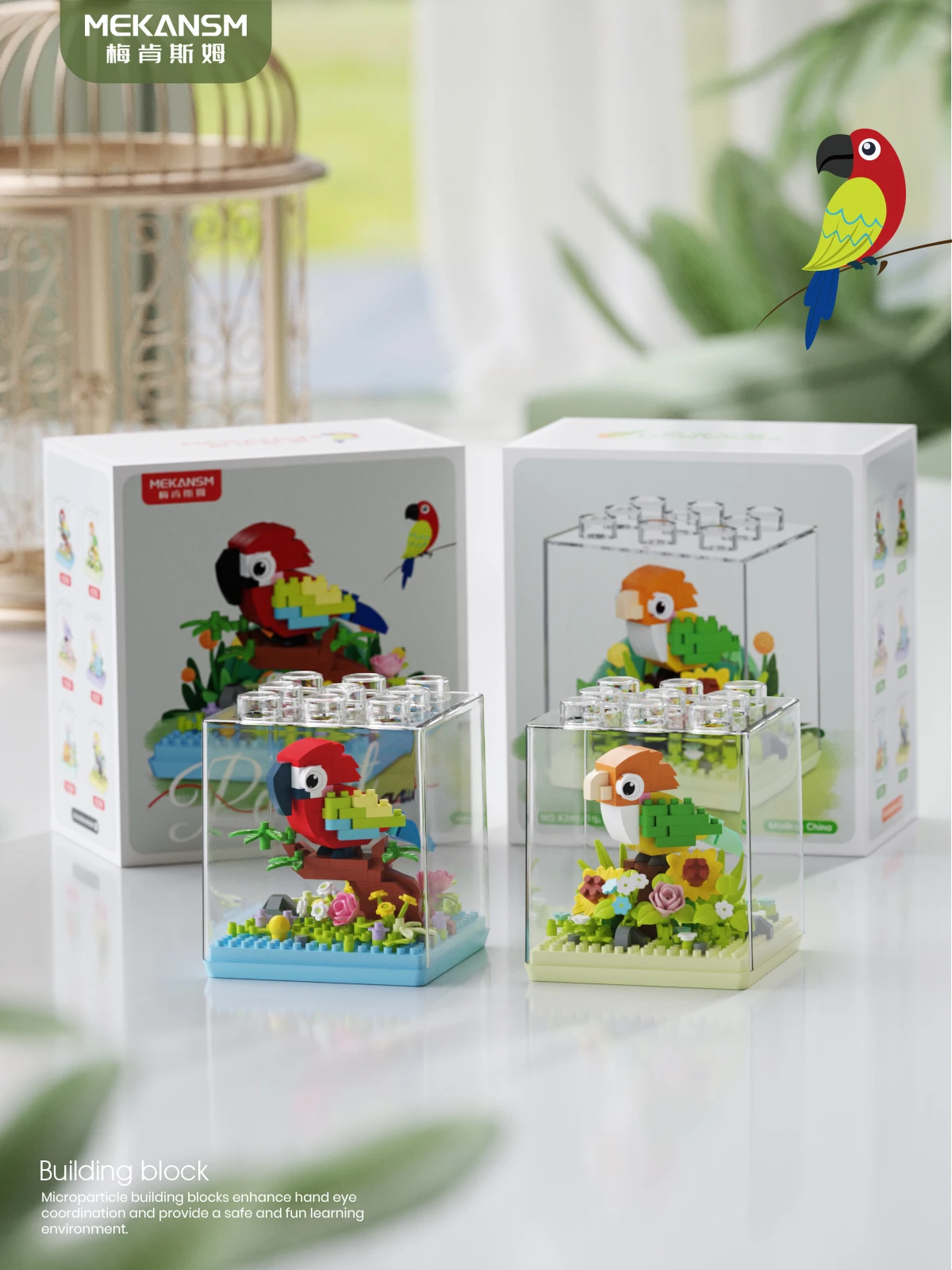 Animal Bird Creative Block 3D Model Mini Educational Parrot Assembly Bricks Desktop Ornament Toys Christmas Gifts for Kids