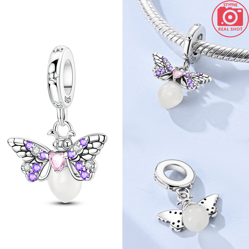 Animal Firefly Blue Bow Dolphin Beads Fit Bracelet Charms 925 Silver Original Jewelry Making Women Anniversary Gift