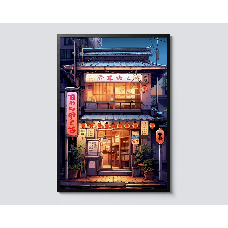 Anime Ramen Shop Food Illustration Canvas Print Tokyo City Street View Wall Poster for Modern Living Room Kitchen Home Decor