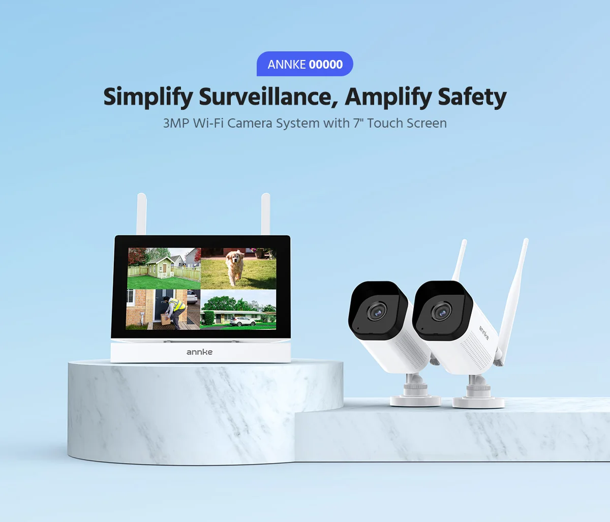 Annke 3MP 4MP 5MP Wifi security camera 4CH Wireless NVR 7-inch LCD 3.6 mm poe ip cameras Two Way Audio wifi camera outdoor