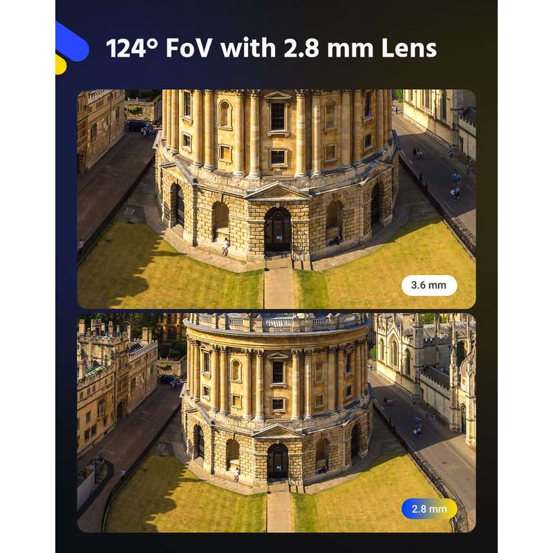 ★ 2.8mm lens with diagonal FOV 124° brings everything back to life