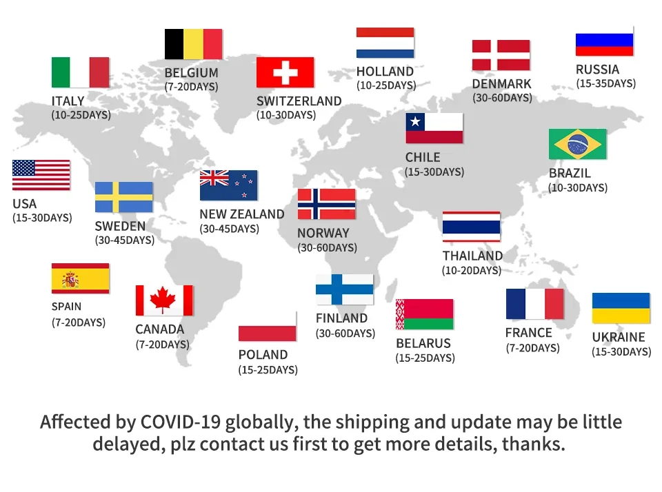 Please note that delivery times are estimates and may vary due to customs procedures, carrier delays, weather conditions, or other unforeseen circumstances.