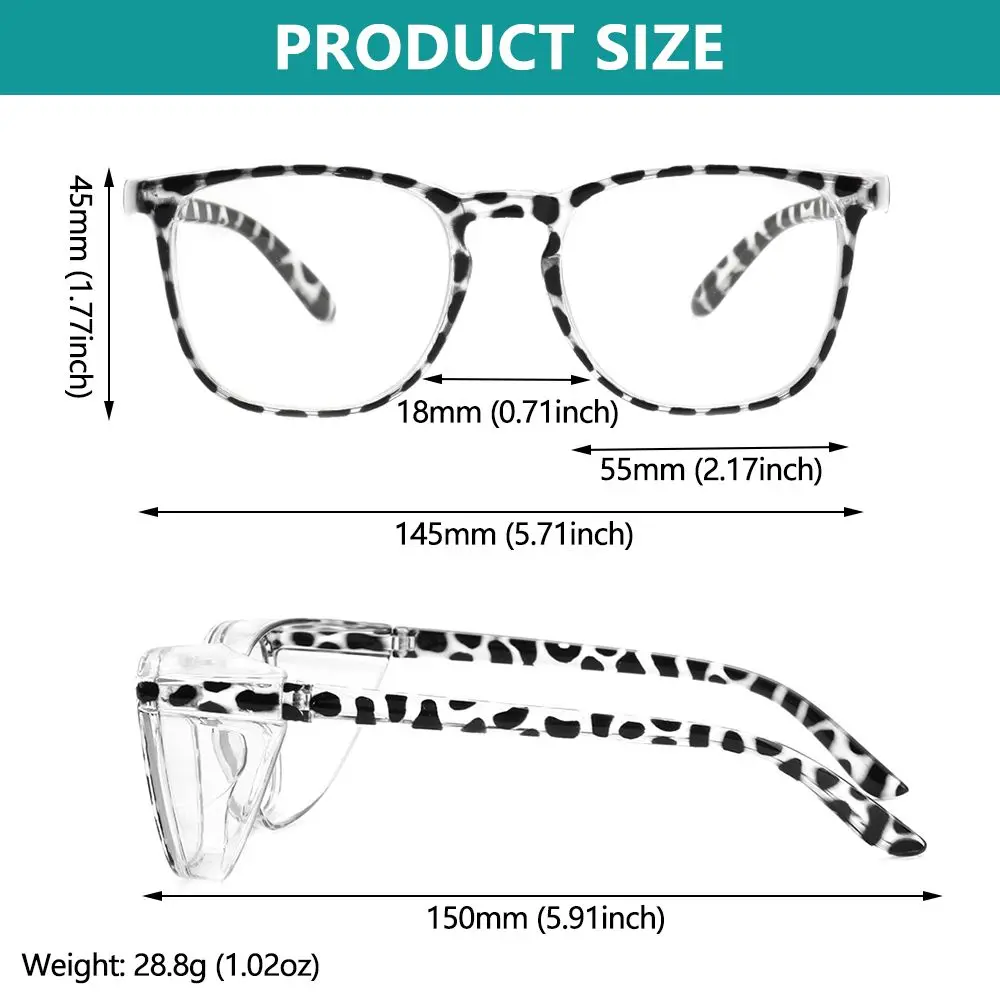 * HIGH-QUALITY AND SAFE MATERIAL: The safety glasses are made of polycarbonate lens and TR90 frame, lightweight, drop-resistant and impact-resistant, comfortable to wear. One-piece nose pads, ergonomically designed, relieve pressure on the bridge of the nose. A reinforced metal hinge, not only design to prevent the loosening of screws but also makes the glasses more smooth opening and closing.