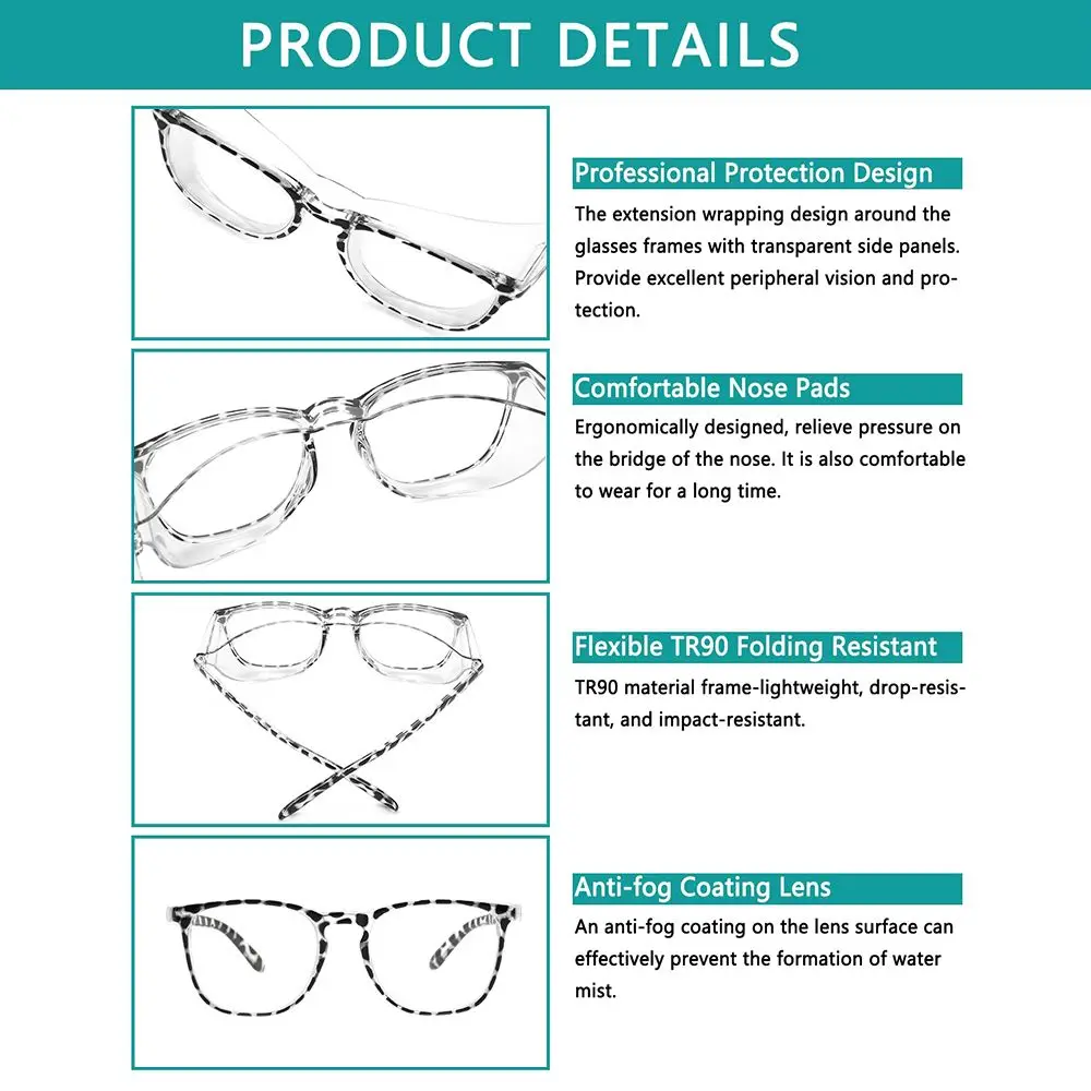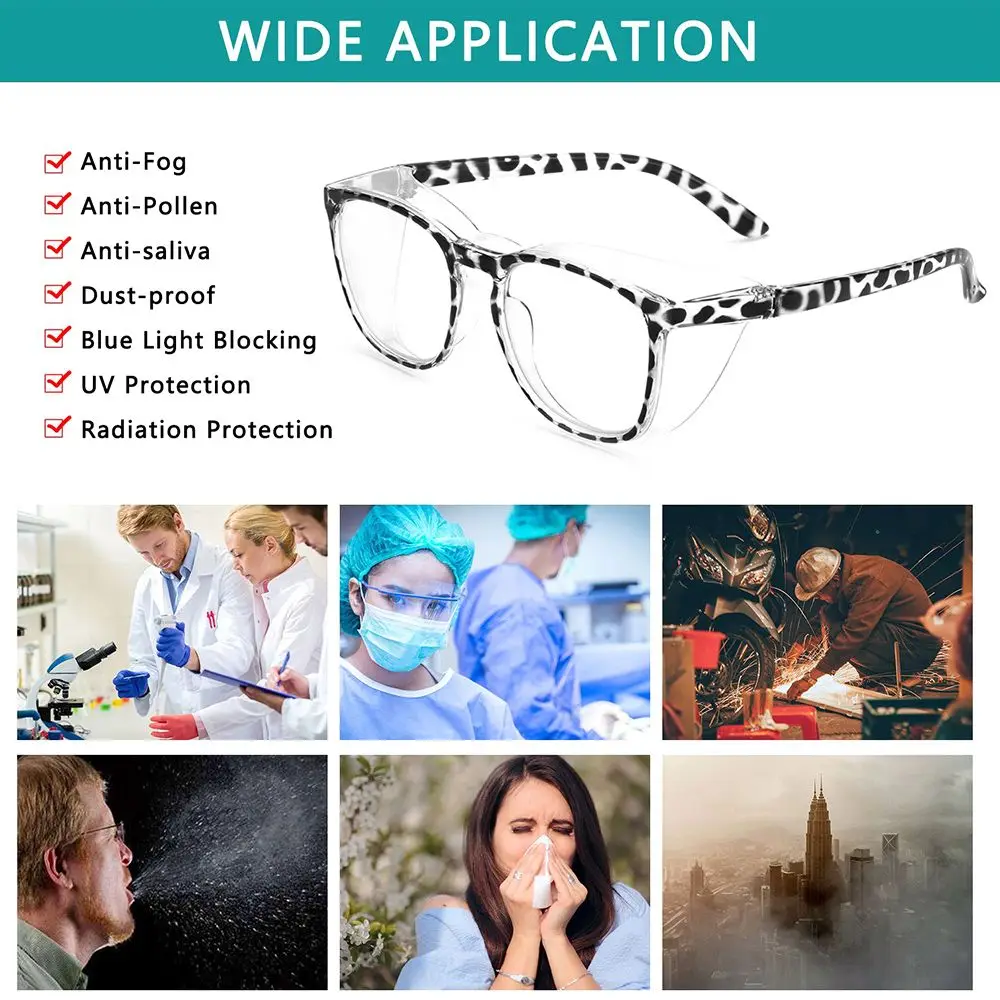 * SUITABLE FOR MULTIPLE OCCASIONS: The glasses can be used as protective safety goggles - anti-fog, anti-pollen, anti-saliva, dust-proof, anti-blue light, UV protection, radiation protection, suitable for woodworking, metal, and construction, laboratory and dentistry, shooting, or any need to wear Place for safety glasses.