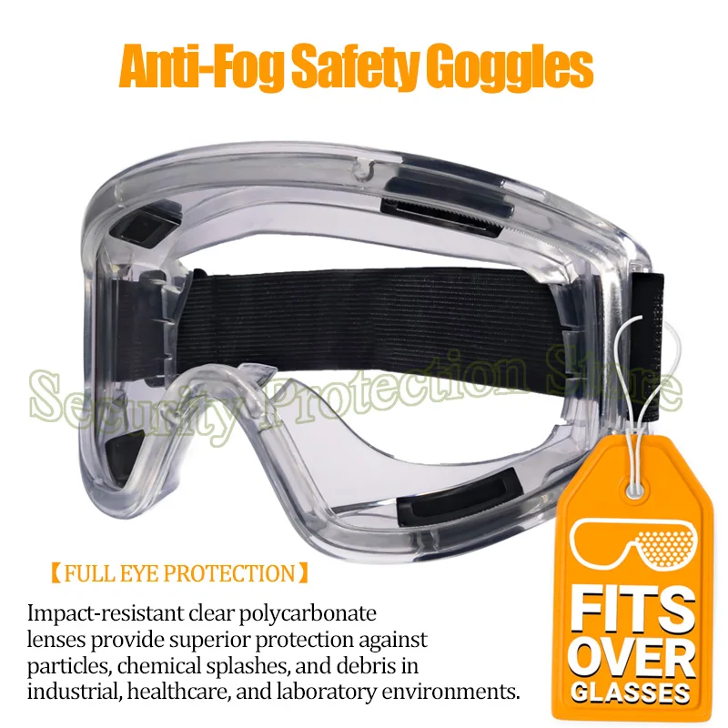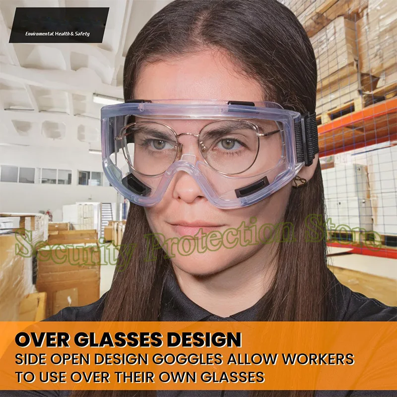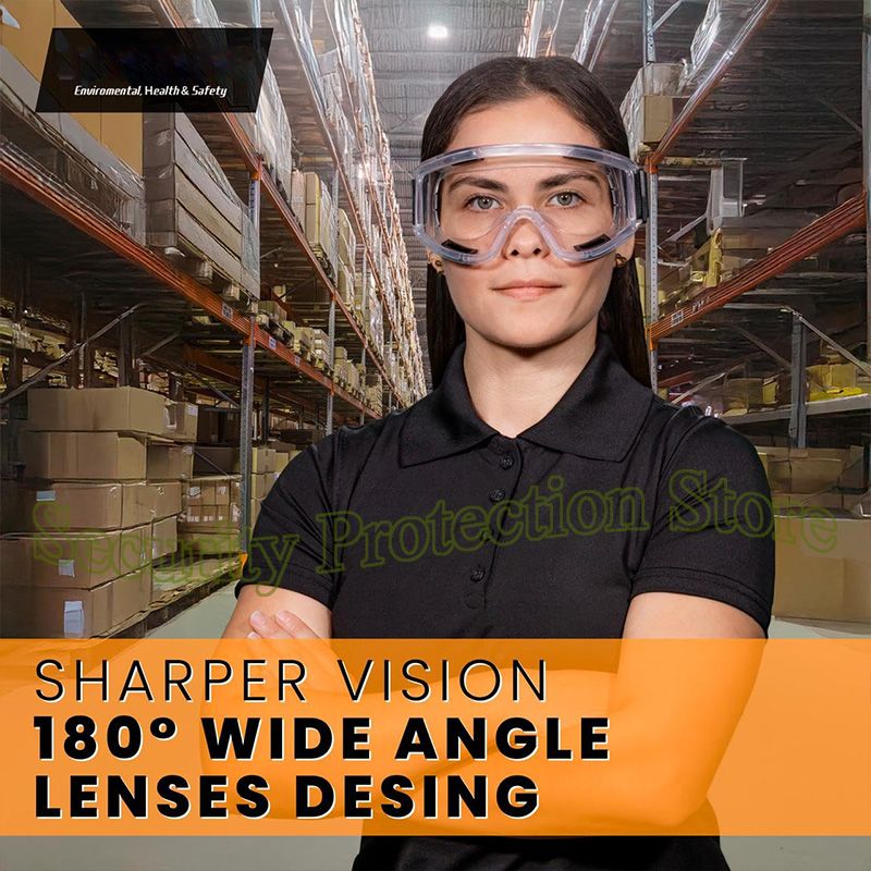 ăFULL EYE PROTECTIONă Impact-resistant clear polycarbonate lenses provide superior protection against particles, chemical splashes, and debris in industrial, healthcare, and laboratory environments.