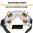ăANTI-FOG & VENTED DESIGNă Breathable vents reduce fogging, allowing for clear vision during demanding tasks while preventing liquid entry.