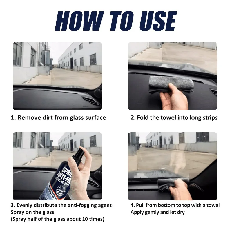 Our anti-fog spray offers a long-lasting effect, keeping your windows clear for longer periods.