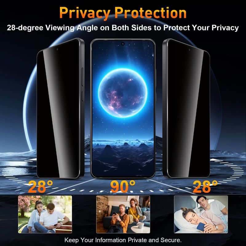 --2 Times Stronger Tempered glass technology + high aluminim material, more anti shocks, temperature variations and bending. Our anti spy peep privacy screen protector glass meets 9H hardness, stronger than other ordinary glass.