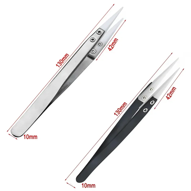 Anti-Static Ceramic Tweezers Stainless Steel Industrial Ceramic Tweezers Insulated Straight/Curved Tip Black-Whit Tweezers