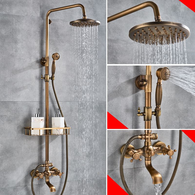 Antique Brass Shower Faucets Set 8'' Rainfall Shower Head Brass Handshower Dual Handle Mixer Tap Rotation Bath Shower Faucet
