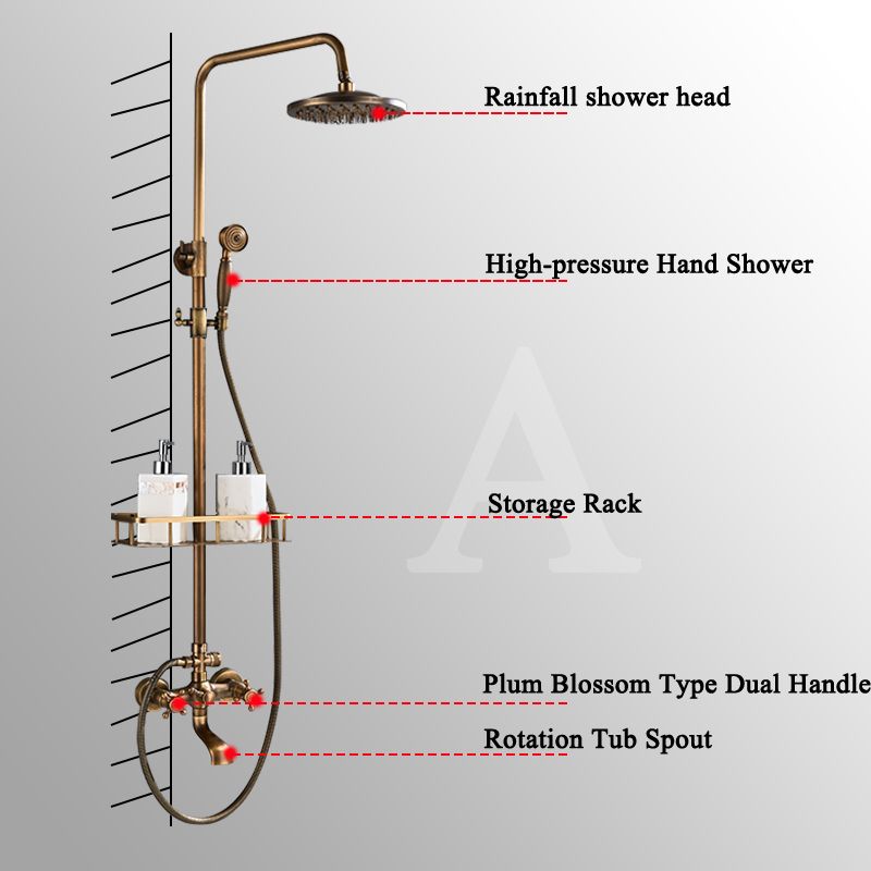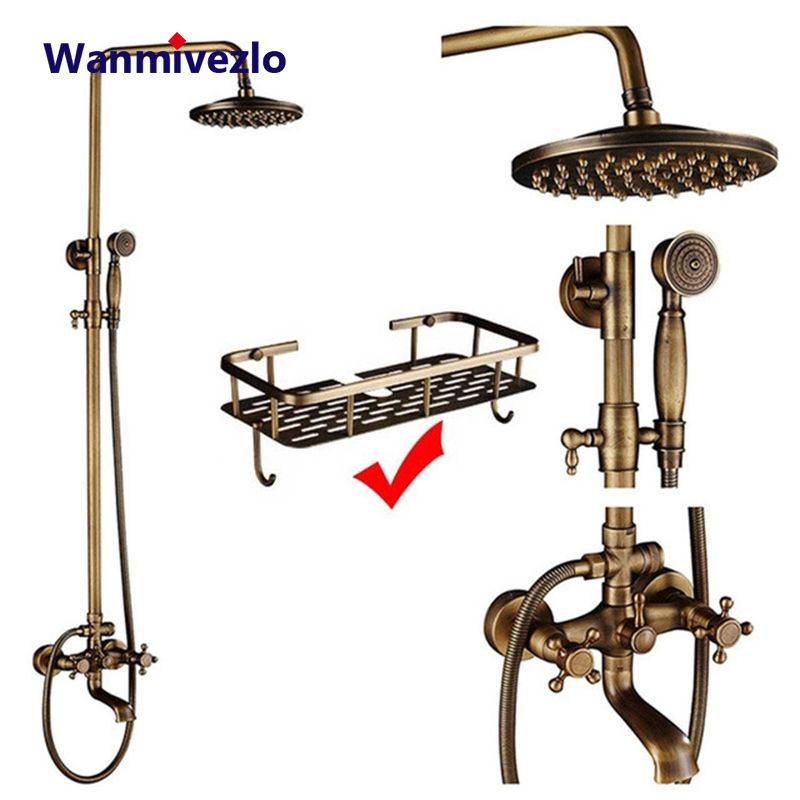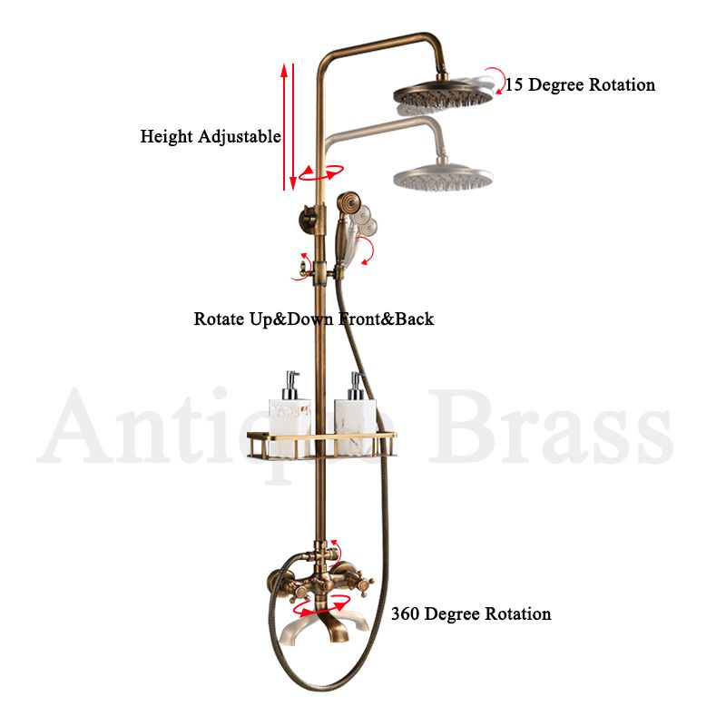 Antique Brass Shower Faucets Set 8'' Rainfall Shower Head Brass Handshower Dual Handle Mixer Tap Rotation Bath Shower Faucet