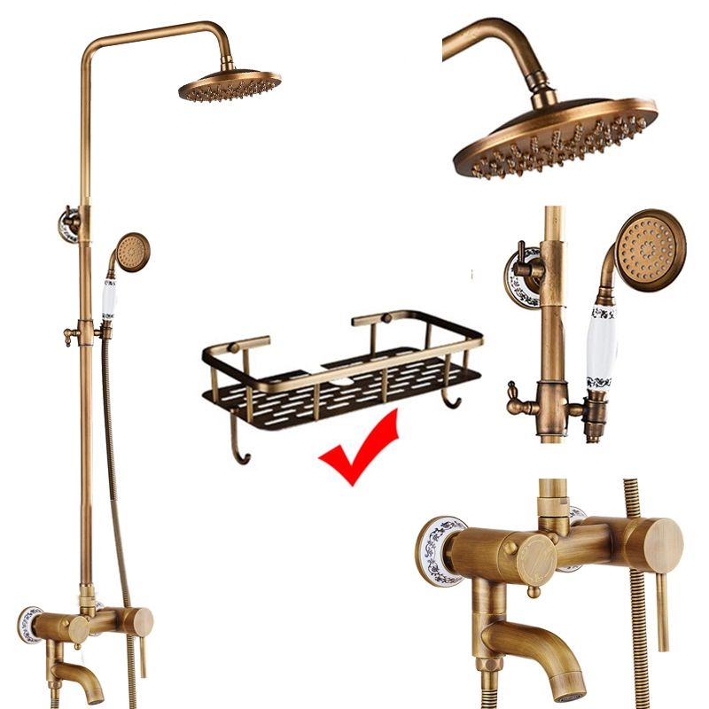 Antique Brass Shower Faucets Set 8'' Rainfall Shower Head Brass Handshower Dual Handle Mixer Tap Rotation Bath Shower Faucet