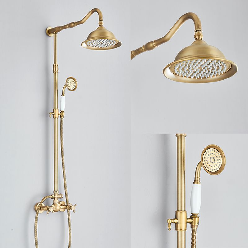 Antique Brass Shower Faucets Set 8'' Rainfall Shower Head Brass Handshower Dual Handle Mixer Tap Rotation Bath Shower Faucet