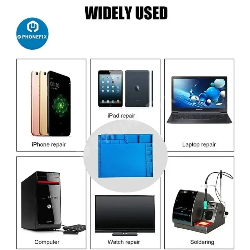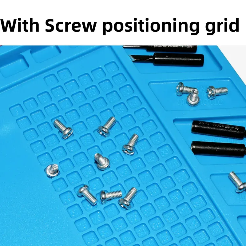 Good heat insulation performance, high temperature resistance, and can withstand temperatures up to 932 ℉. When soldering at high temperatures, the repair work mat protects the workbench; Anti static design, good insulation performance, can support various cellphones, laptops, and computers for maintenance work; Made of silicone material, soft, can be easily bent and not easily deformed.