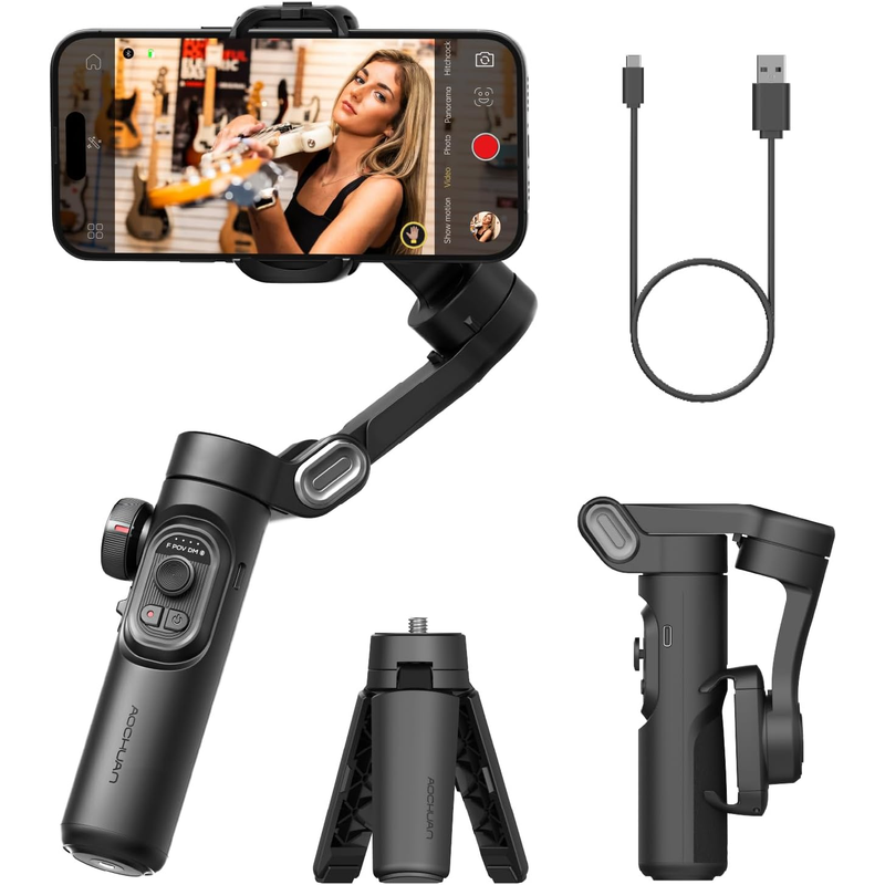 The Aochuan handheld gimbal features a 3-axis design, ensuring smooth and stable footage regardless of your movements. Perfect for vlogging, TikTok, and other mobile-based videos.