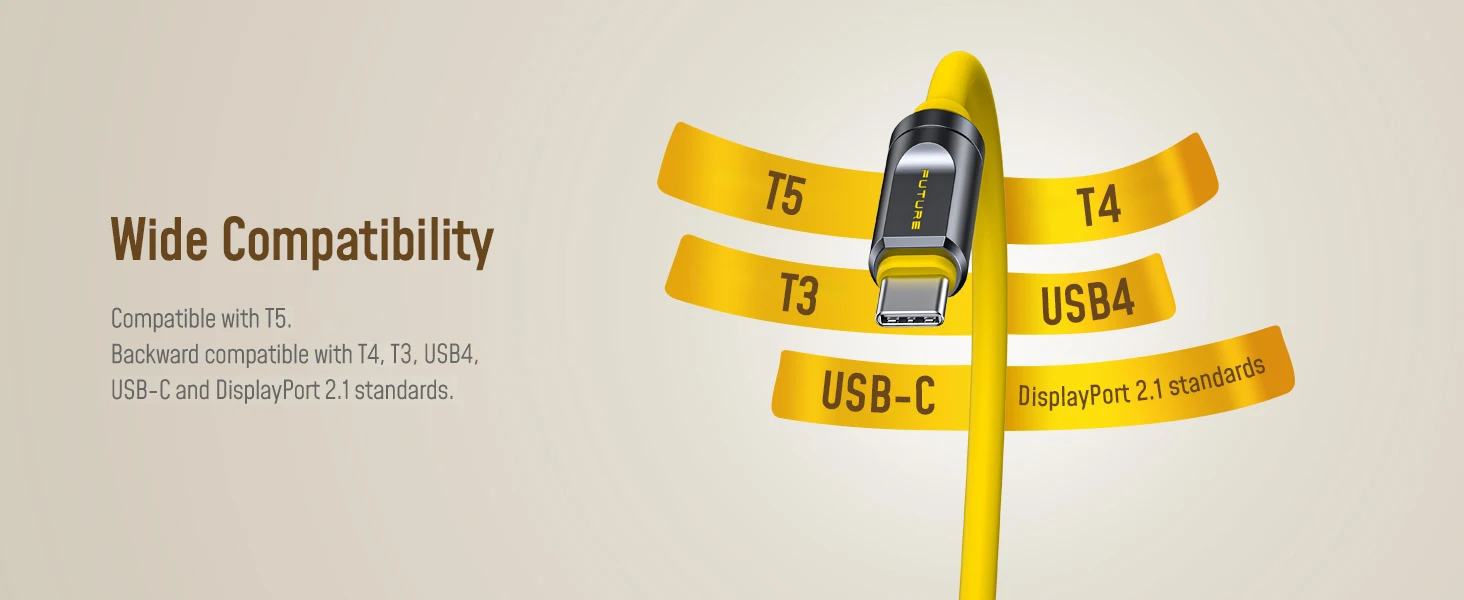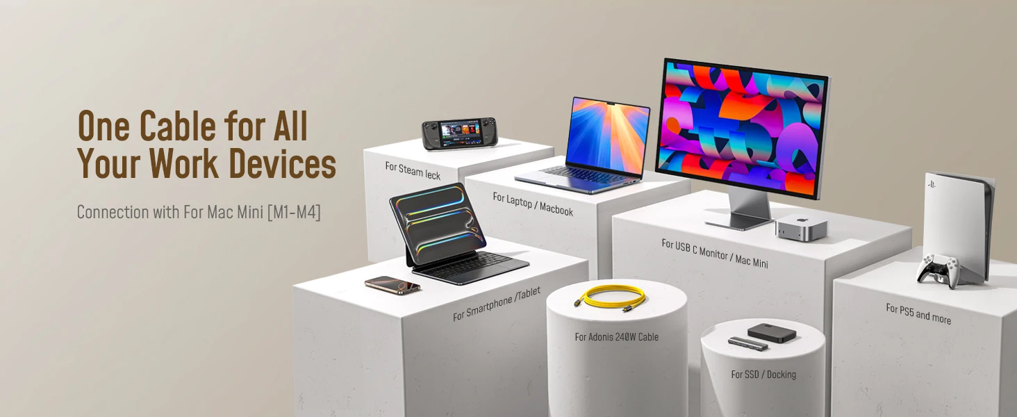 Compatible with all USB-C devices, it seamlessly connects with Mac Mini M4 Pro, USB4, USB-C, high-speed SSDs, docking stations, and external audio interfaces ,for Thunderbolt 5/4. Supports bandwidth boost, DisplayPort 2.1, and future-proofs your setup with a cable built for next-gen devices.