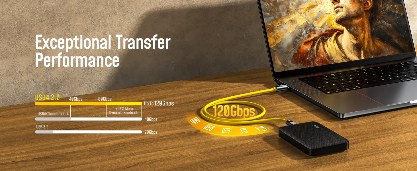 Experience unmatched unidirectional speeds of up to 120Gbps and bidirectional speeds of 80Gbps, making file transfers, 8K video streaming, and high-performance computing effortless. Designed for AI, VR, and AR innovations, this cable ensures 3x+ lightning-fast data transfers for professionals and enthusiasts alike.