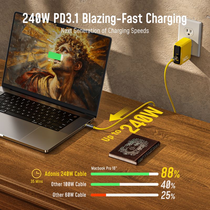 This 240W USB-C charger cable for Thunderbolt 5/4/3, USB4, and USB 3.2 devices, seamlessly connecting to a variety of devices including MacBook Pro/Mac, SSDs, iPhone 16, iPads, USB C displays, docks, GaN chargers, and more. Whether you're using the latest laptops, external storage devices, or high-resolution displays, this cable provides efficient data transfer, charging, and video capabilities, meeting daily needs and ensuring reliable performance for the next few years